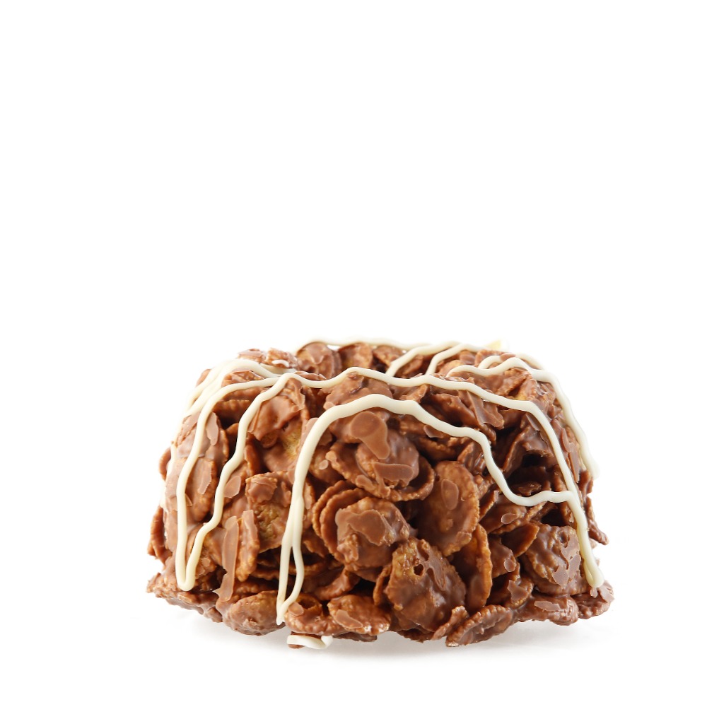 HOJUELAS + CREMA DE AVELLANA + CHOCOLATE DE LECHE *ESTE PRODUCTO ES BAJO PEDIDO CON 1 DÍA DE ANTICIPACIÓN MÍNIMO MEDIDAS: 10 X 10 X 10 CM PESO: 120 GR