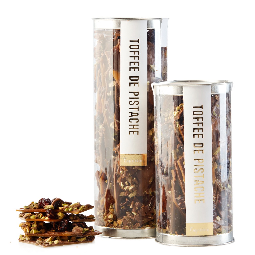 CARAMELO DELGADO Y CRUJIENTE + PISCTACHE CON SAL TOSTADO + CHOCOLATE DE LECHE